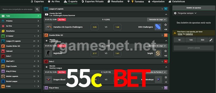 O 55c bet oferece uma grande seleção de opções de apostas em e-sports com probabilidades competitivas